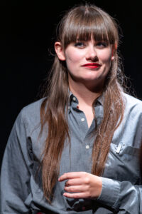 REC : Ce qui m’a plu dans votre présentation c’est le mot poésie… enfin de l’impro poétique ! Quand je l’ai vu, j’ai pensé aux contes d’Andersen puis mon imaginaire s’est déporté dans l’univers de Saint-Exupéry. Oui nous avons une jeune comédienne dynamique sur scène, mais au-delà on a une poétesse qui nous amène dans son univers : on assiste à de la poésie intemporelle !